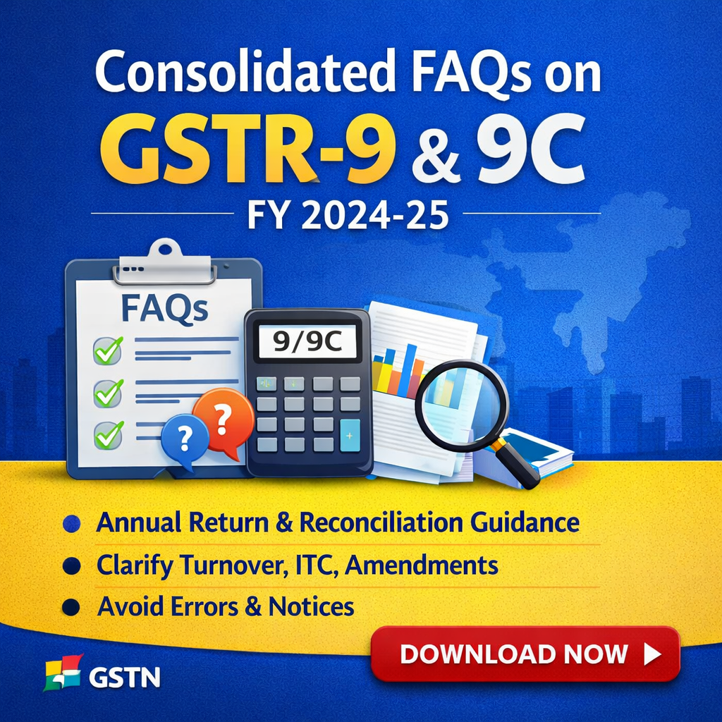 GSTN has issued a Consolidated set of FAQs for GSTR-9 and GSTR-9C for FY 2024-25 to assist taxpayers in accurately filing their Annual Return and Reconciliation Statement.