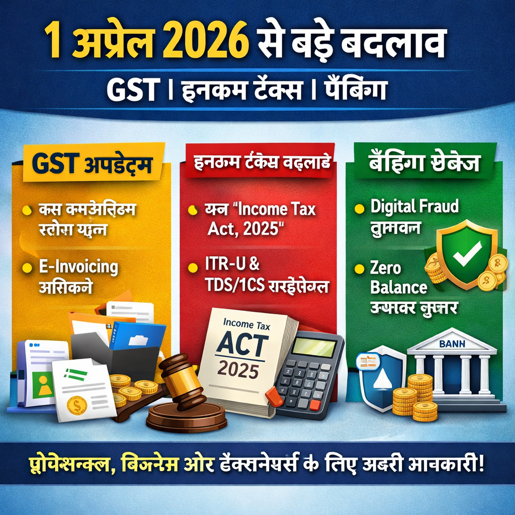 यह आर्टिकल 1 अप्रैल 2026 से लागू होने वाले सभी महत्वपूर्ण बदलावों को कवर करता है — प्रोफेशनल्स, बिज़नेस और टैक्सपेयर्स के लिए एक कम्प्लीट गाइड।