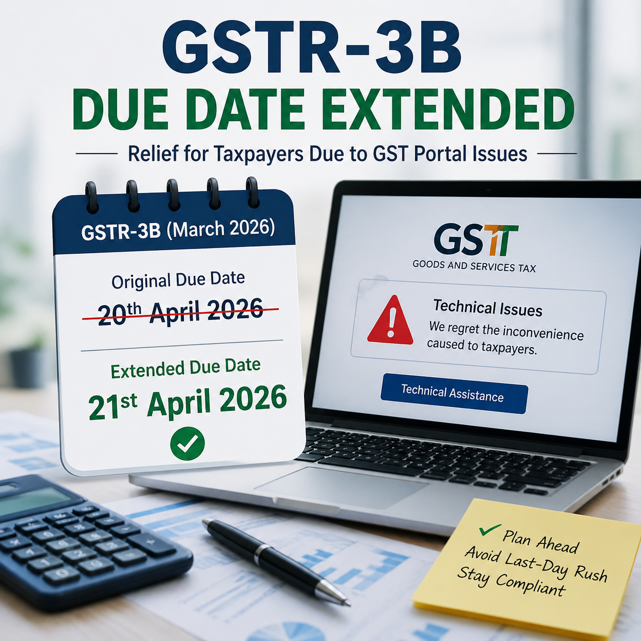 The extension of the GSTR-3B due date to 21st April 2026 provided much-needed relief to taxpayers affected by portal-related issues.